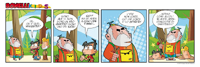 Il problema è che Alfredo Castelli, nella posizione in cui è, sarebbe tenuto a smentire la suddetta voce anche se si basasse su dati oggettivi, visto che se la confermasse rischierebbe di compromettere anche le ultime - esilissime - speranze di una ripresa su cui la casa editrice sta investendo... Quindi diciamo che la sua smentita lascia un po' il tempo che trova. Del come e del perchè, in tempi non sospetti, avevo immaginato che il rilancio di Martin Mystère non promettesse granchè bene ne avevo parlato a suo tempo (CLICCATE QUI), quindi su questo non mi ripeterò, così come avevo già scritto che l'idea di dirottare Alfredo Castelli nel progetto Bonelli Kids sembrasse (anche) un modo per creargli una nuova sponda nel caso il rilancio di Martin Mystère fosse andato male (CLICCATE QUI)... Comunque anche l'idea dei Bonelli Kids sembra prossima ad un prematuro naufragio, tant'è che sul sito Bonelli (CLICCATE QUI) è stato annunciato che NON verranno più pubblicate nuove strisce (mentre qualcosa di nuovo comparirà sporadicamente sulla pagina facebook)... Nonostante la fantasmagorica (sigh!) introduzione di Alfredo Castelli stesso, in versione "kid"...